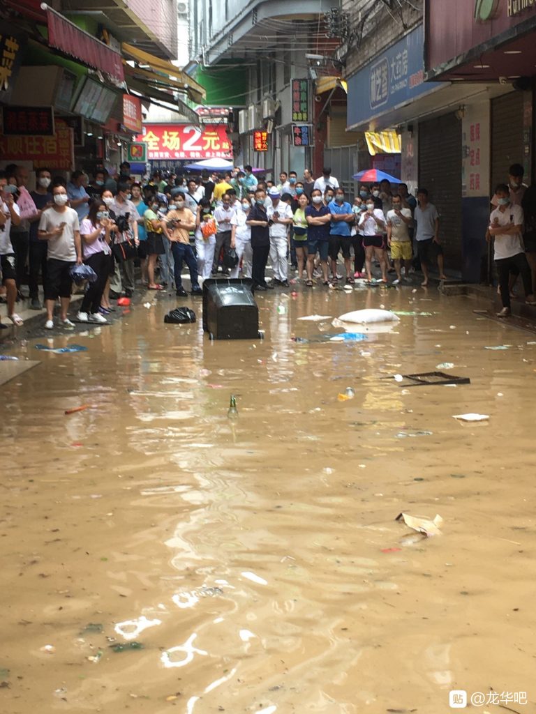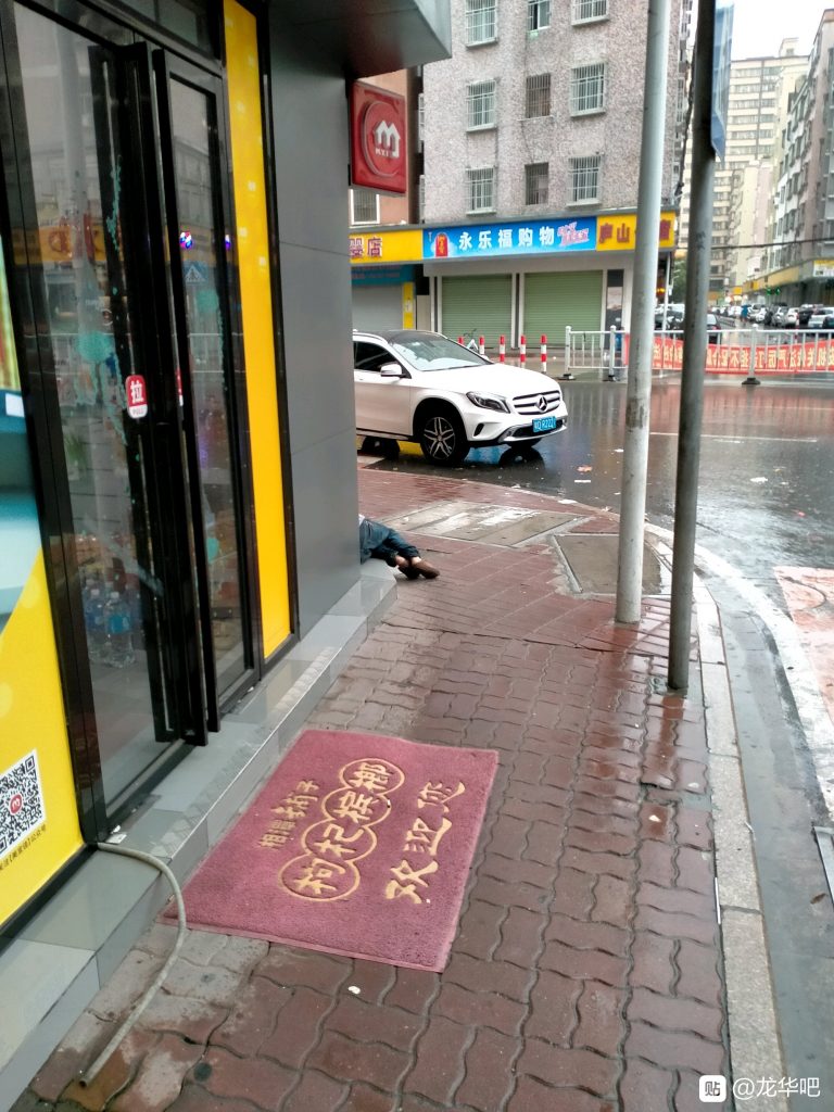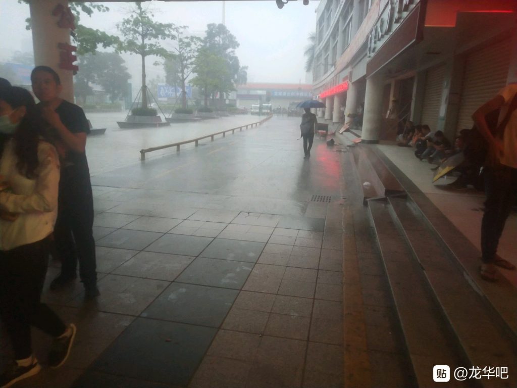 龙华下大雨了 老哥们都在躲雨