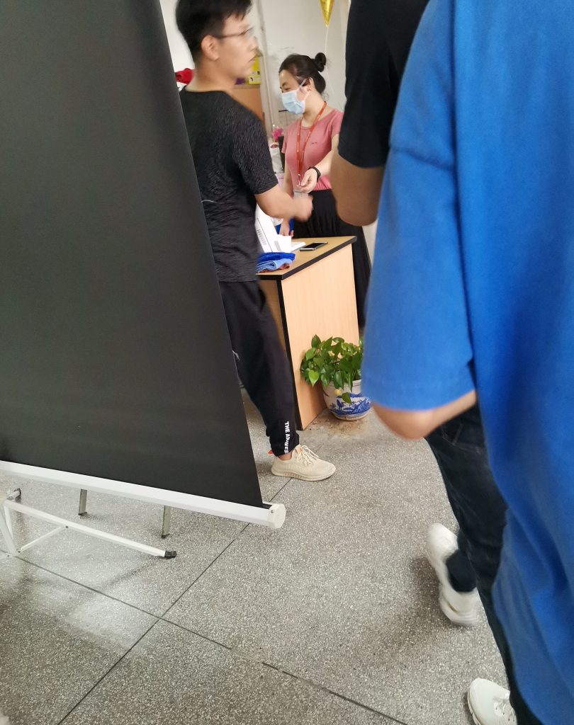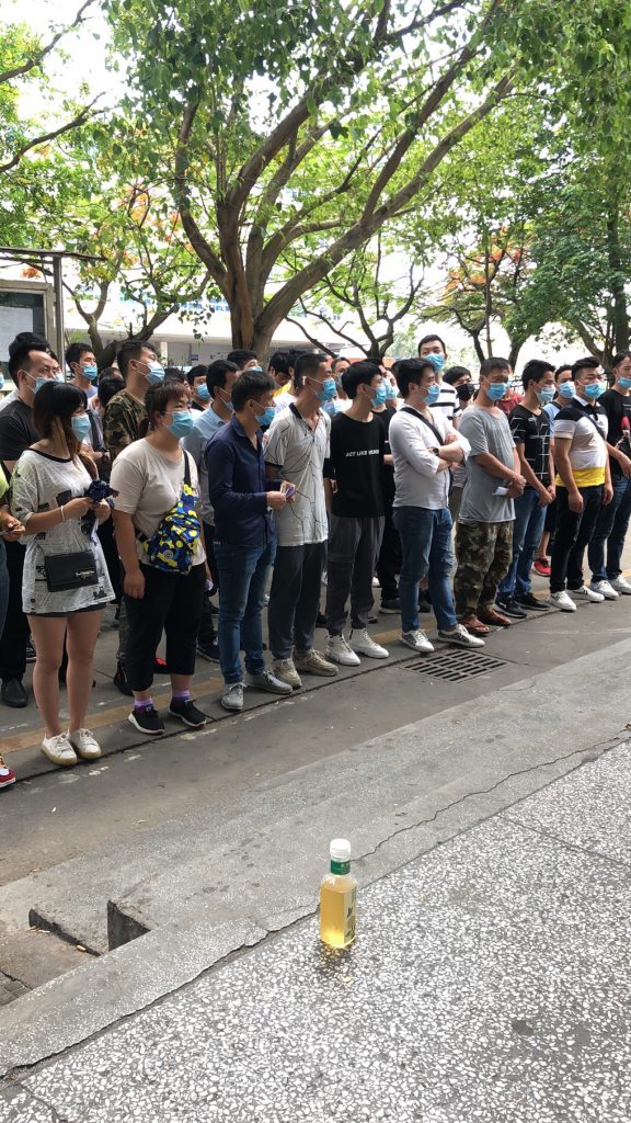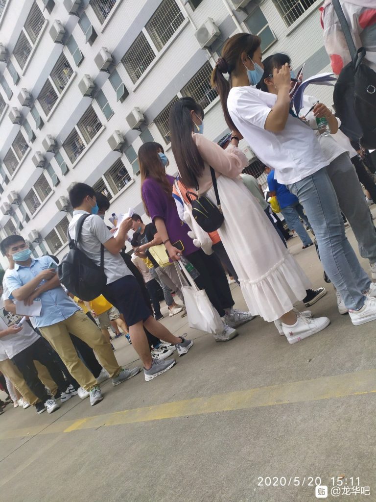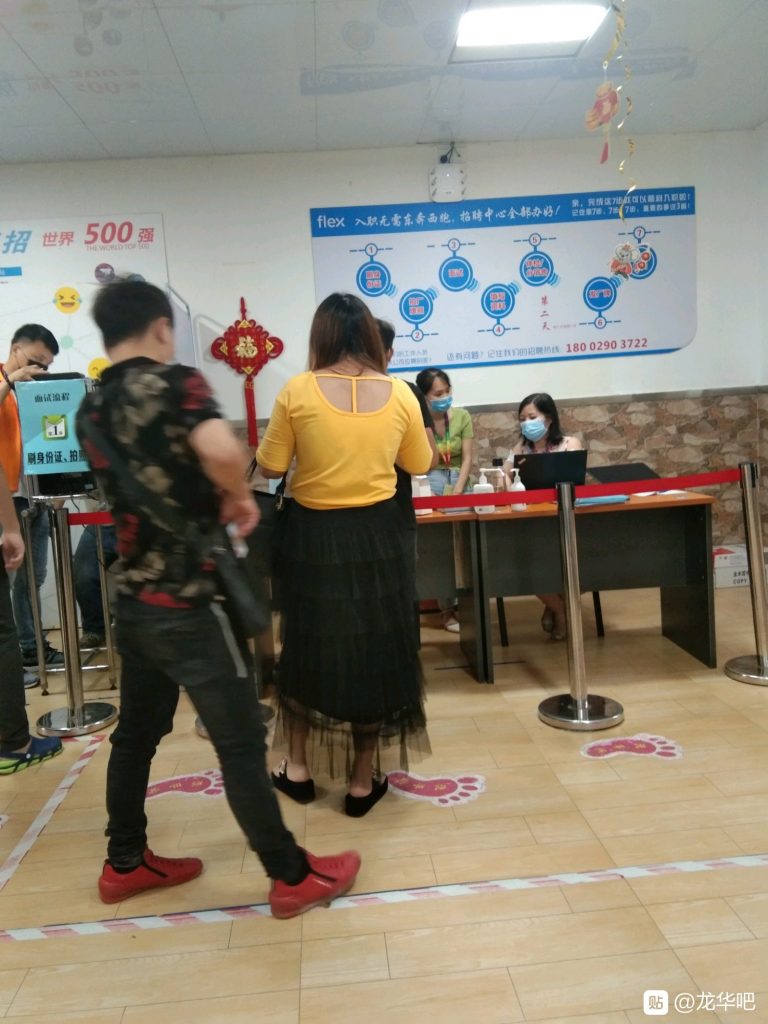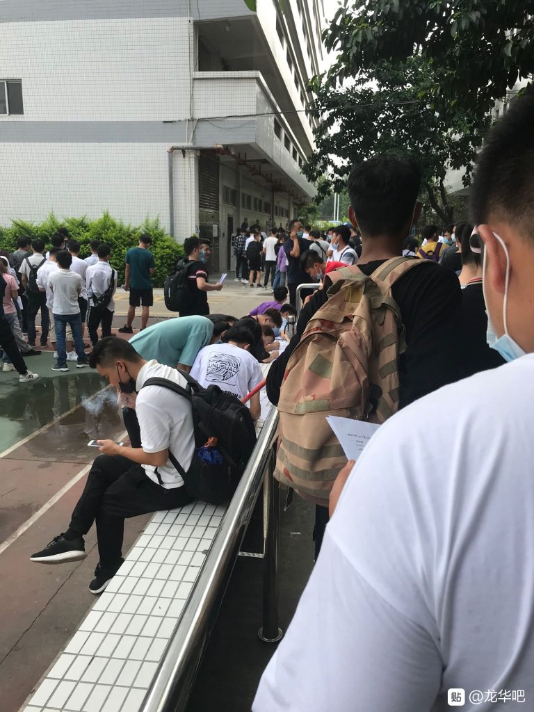 松岗卓翼,下雨啦,一两千号人排队面试体检