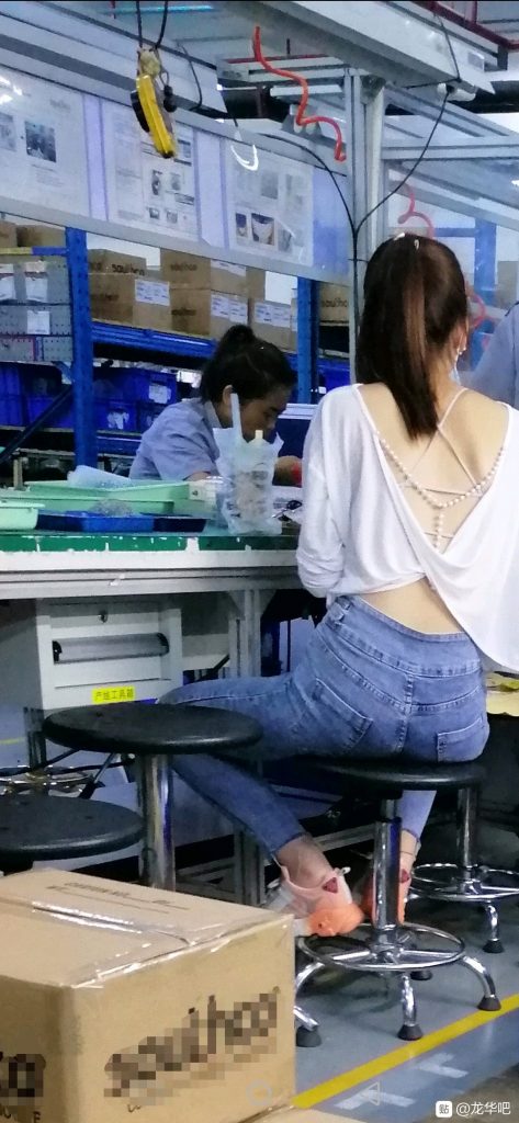 厂里的妹子够时尚,反正这厂里几乎都是女人,穿不穿都无所谓