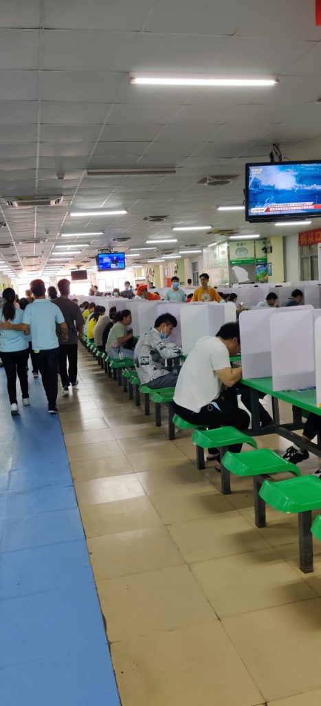 高新排队厂。吃饭排队,测体温排队,下班打完卡还要排队