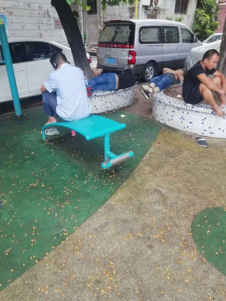 能避雨的小巷子躺满了老哥。