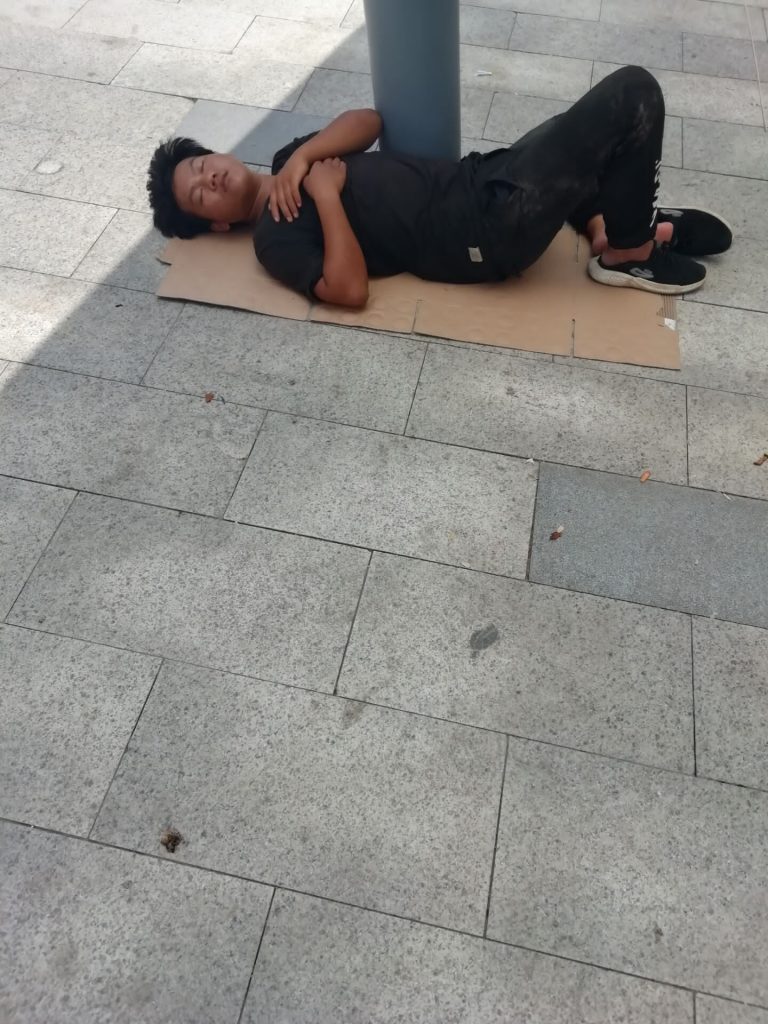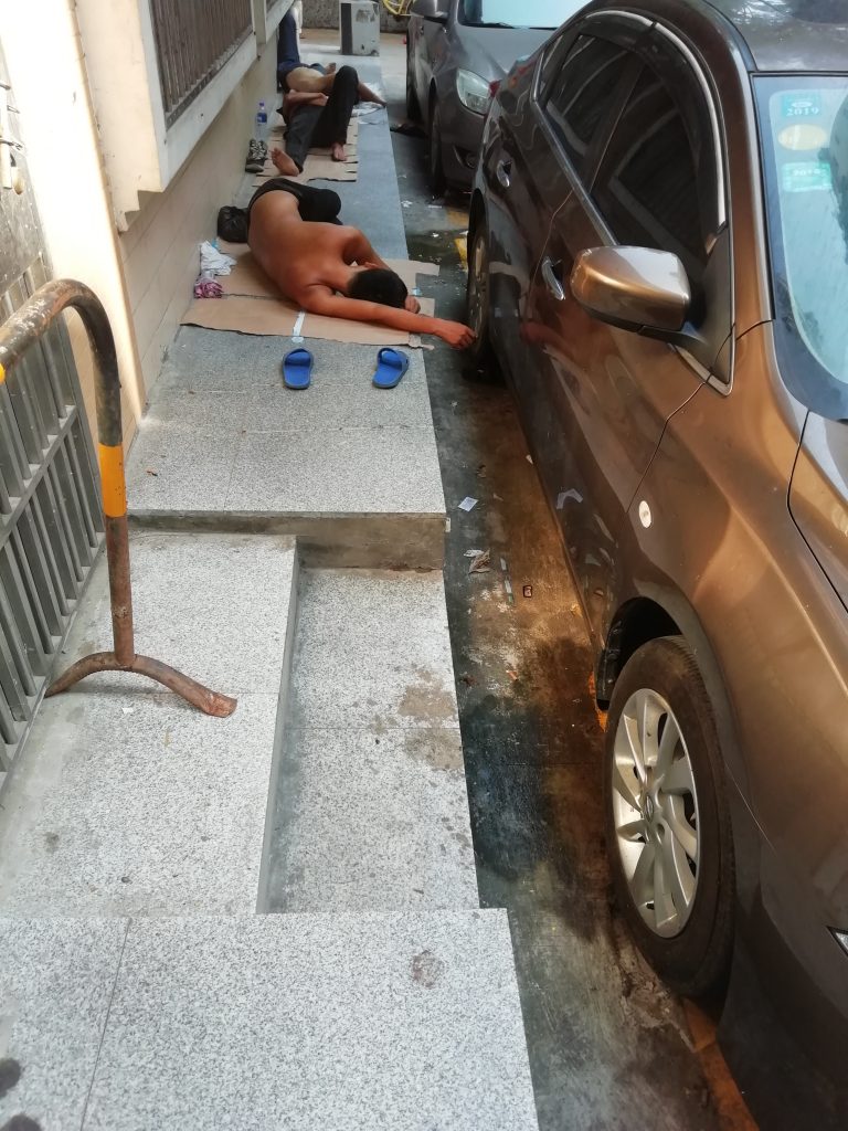 挺佩服这些挂逼老哥们的,拿两纸箱一折,往地上一铺,就能躺下睡一觉