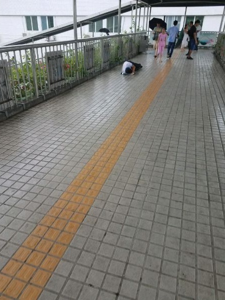 这么大雨,居然能躺天桥,漂进来的雨让他全身都湿了
