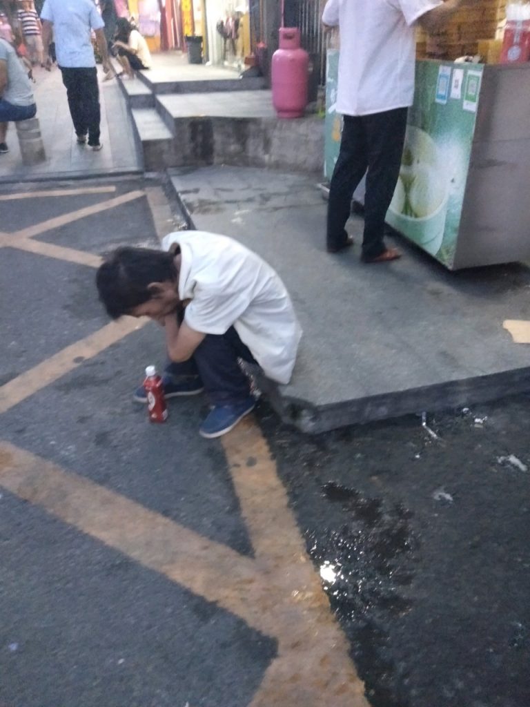 景乐市场入口处:老哥在陷入了沉思