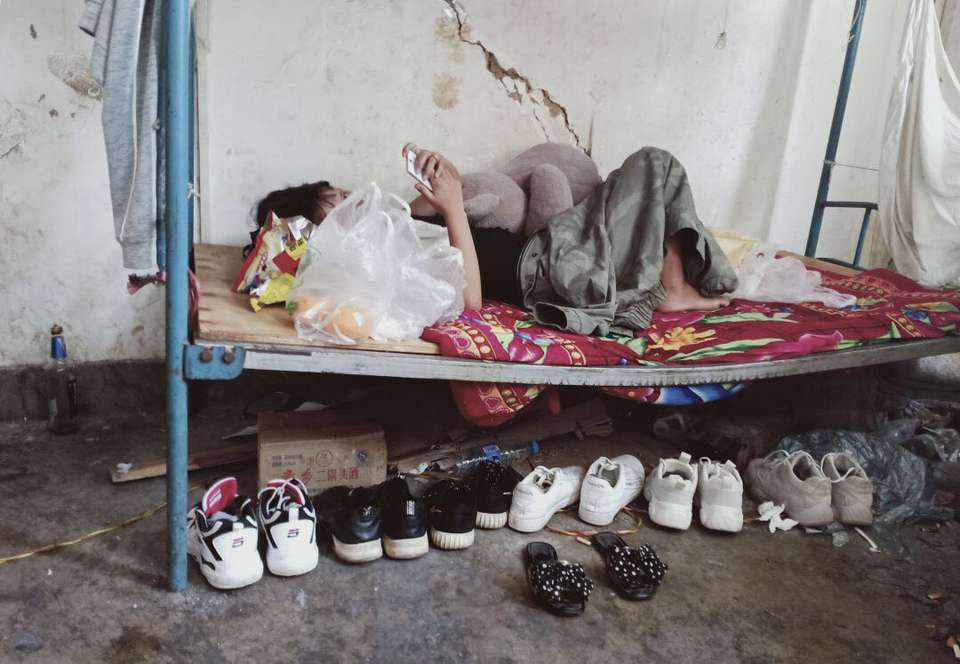 放假了就是躺在这个小床架上,这种日子很苦,但是有办法吗?