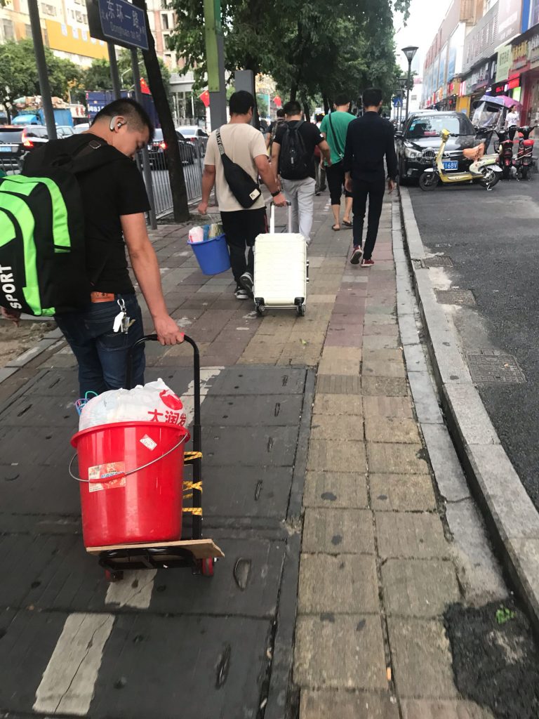 提桶是應為廠裡熱水供應處離開宿舍遠,需要接半桶熱水再拿回宿舍洗澡, 又能拿來洗衣服,所以桶是必需品,老哥必備