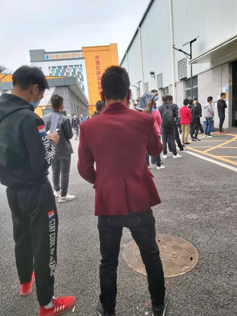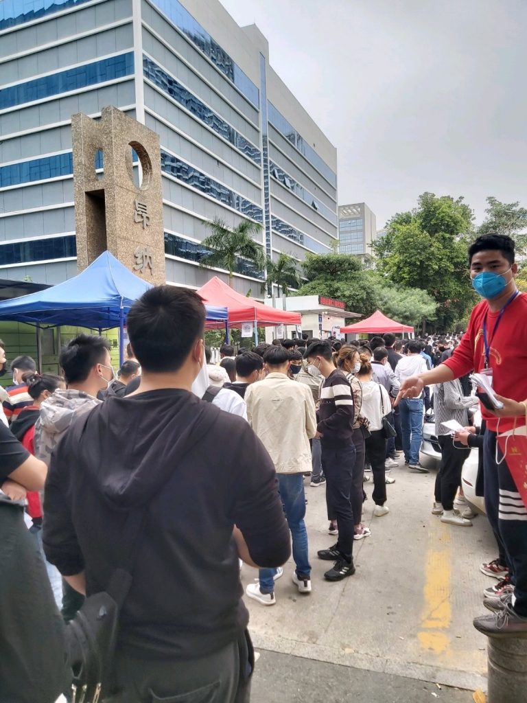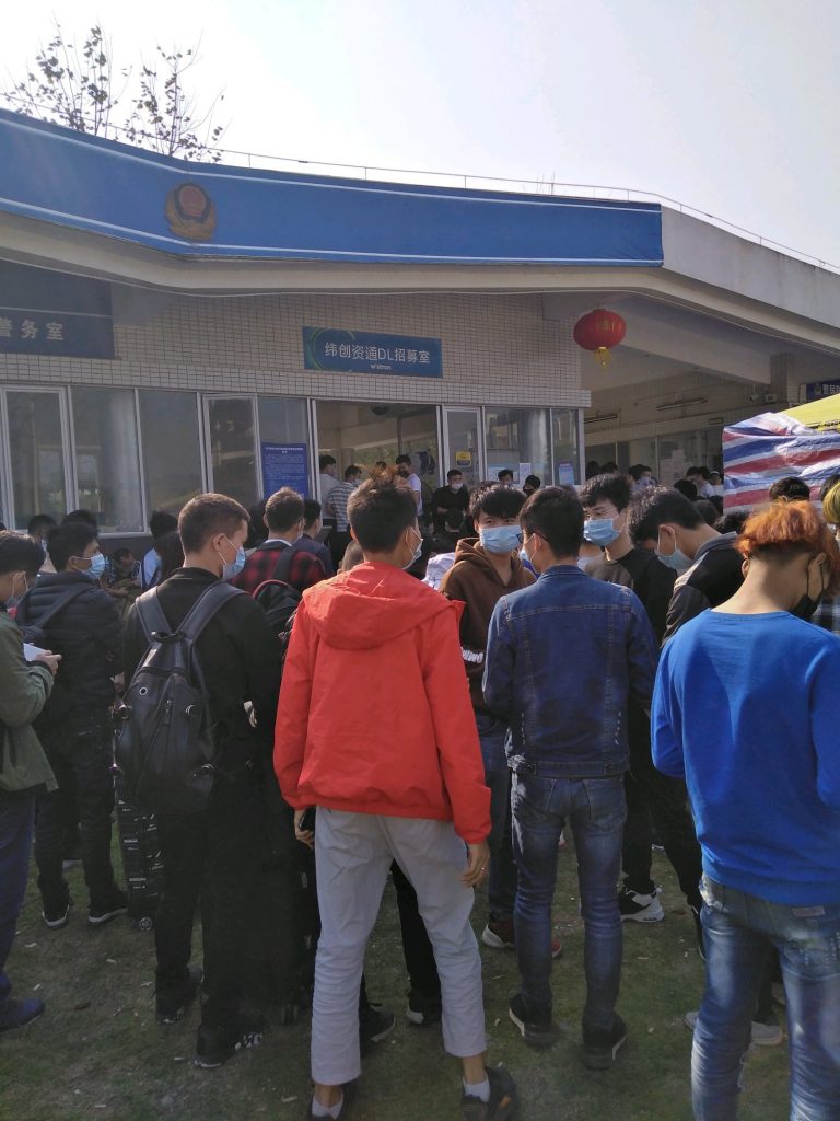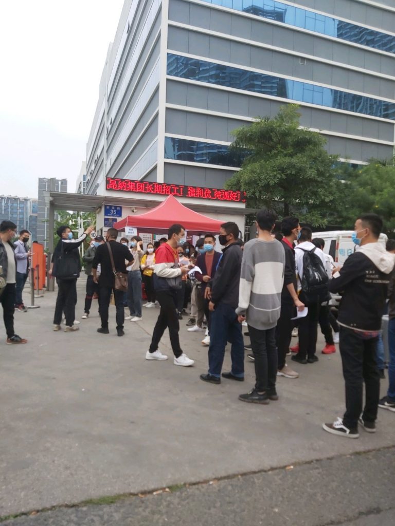 看厂门口这么多人等面试
