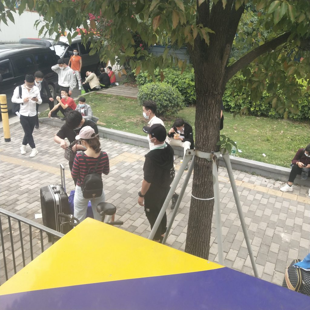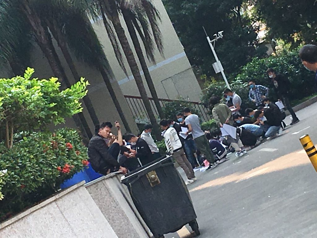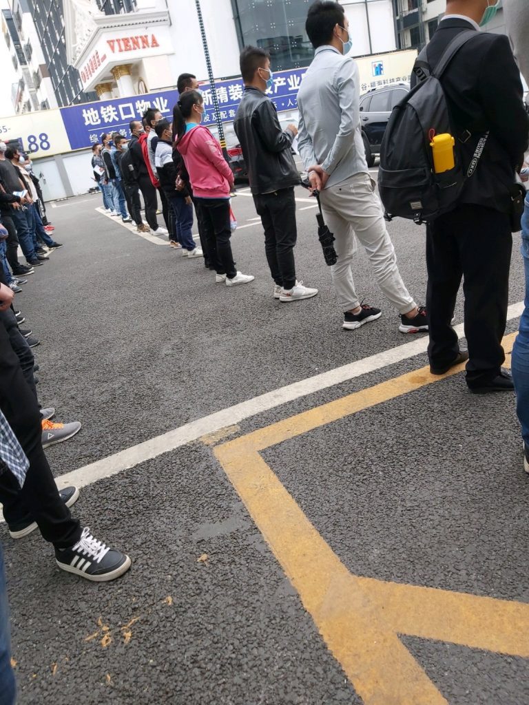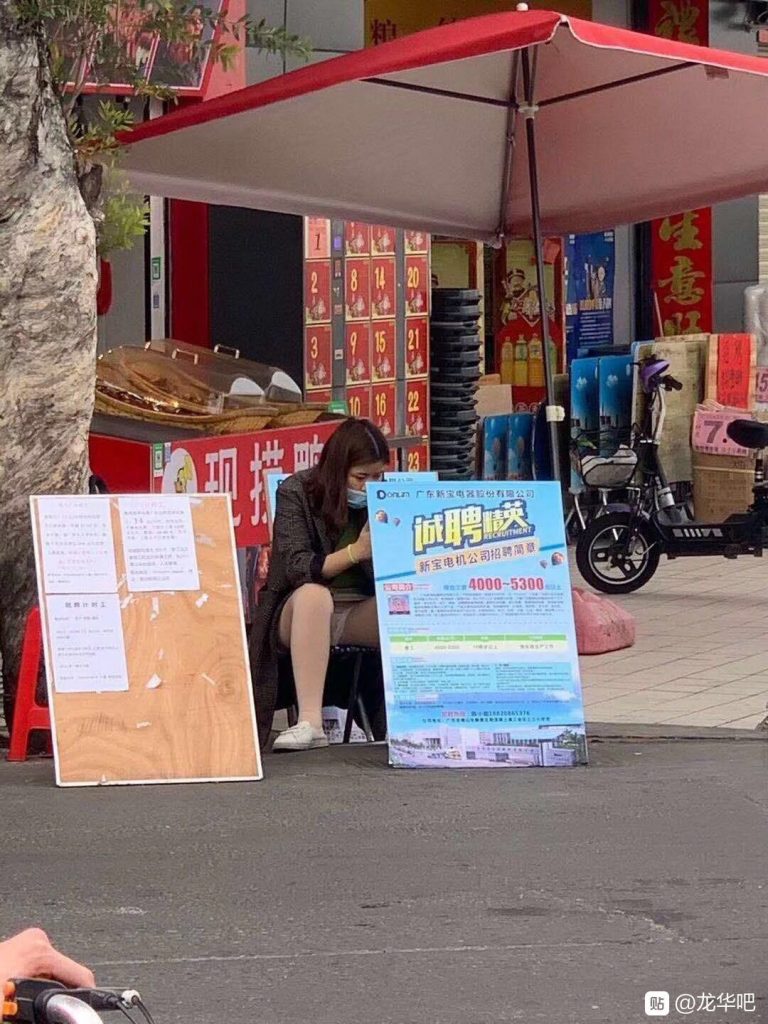看厂门口这么多人等面试