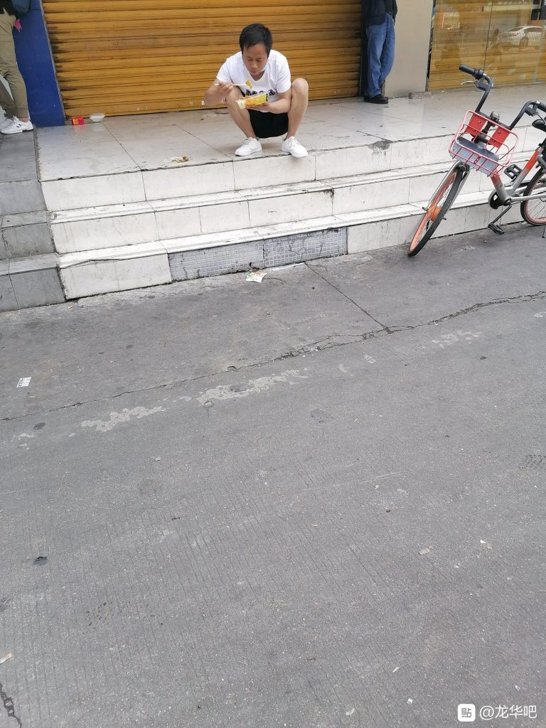 这位老哥在路边吃挂逼面