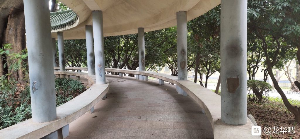 龙华公园走廊的每根柱子,都被老哥们包了浆